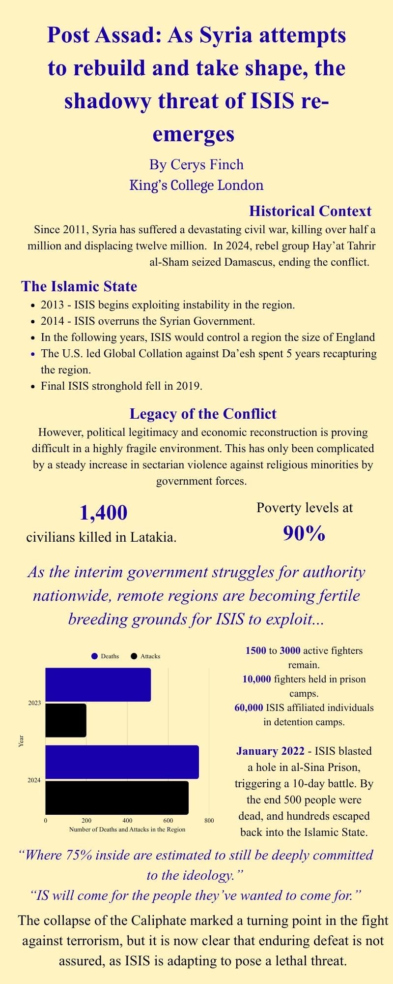In this episode Cerys discusses the post Asad experience of Syria and the potential of ISIS re-merging. She is a Citizen journalist with us on a placement organised with Department of War Studies, KCL. This article was edited using Lex.page.