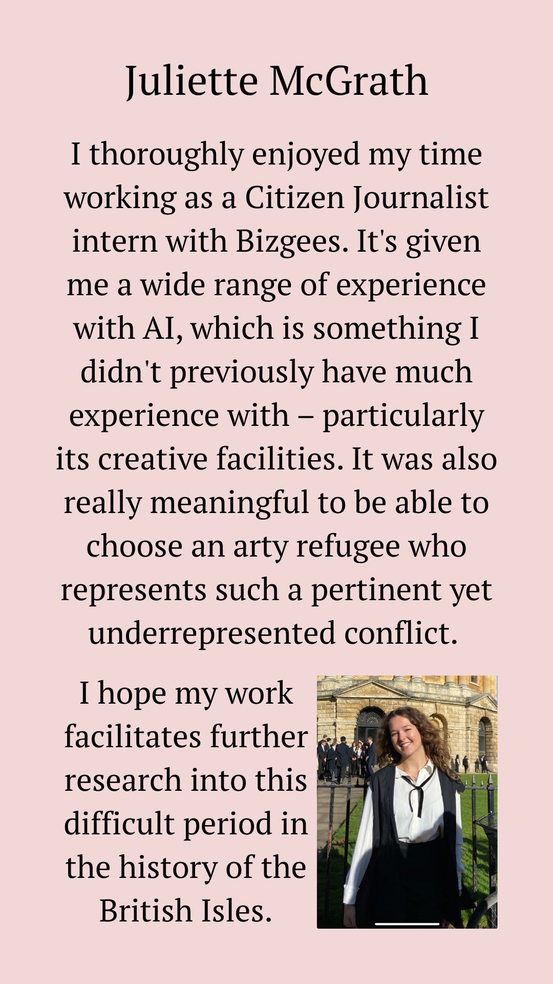 In this post Juliette highlights the arty refugee experience of Padraic Fiacc. She is a citizen journalist on a placement with us organised by Oxford University Career Services. She also organised the micro game to make the journalistic experience interactive.