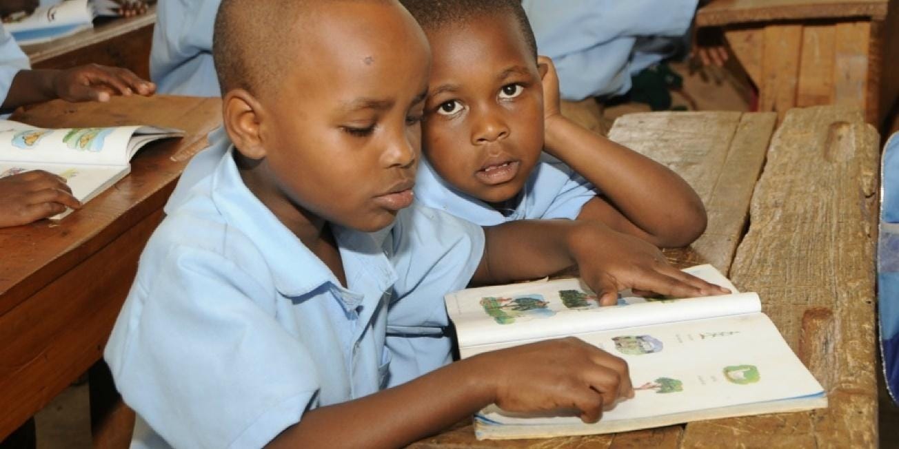 CC: Rwandan children consult a textbook, 2025, Global Partnership Education.