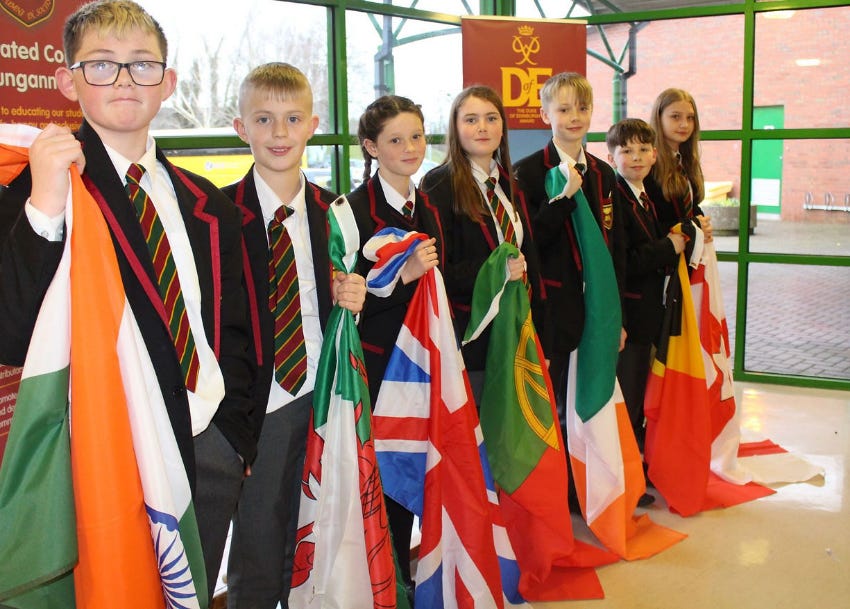 CC: Pupils at a Northern Irish integrated school demonstrate their various nationalities, 2022, Integrated College Dungannon.