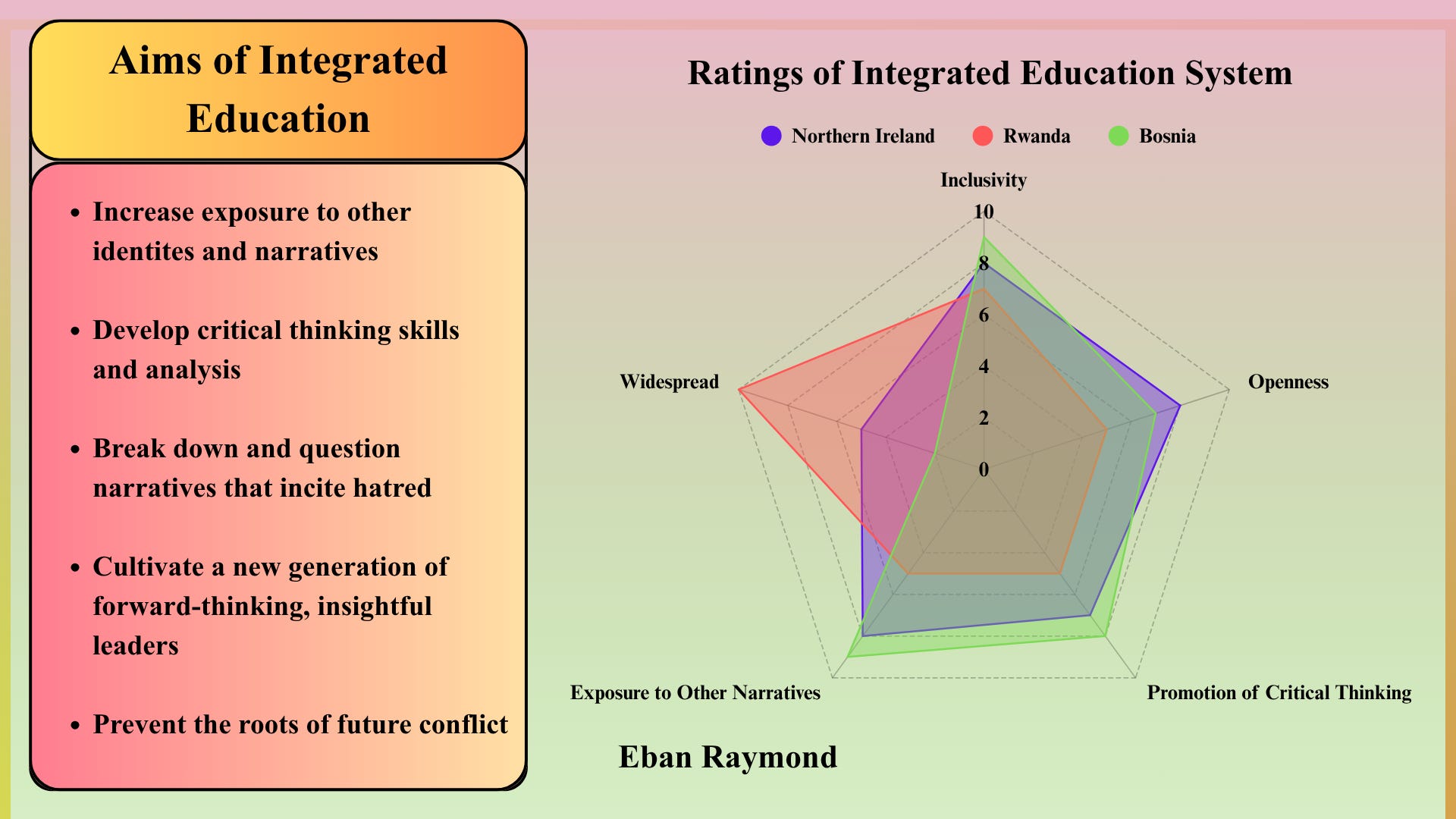 In this episode Eban discusses the complexity of using integrated education to reconcile community differences in post conflict communities. He is a Citizen journalist with us on a placement organised with Department of War Studies, KCL. This article was edited using Lex.page.