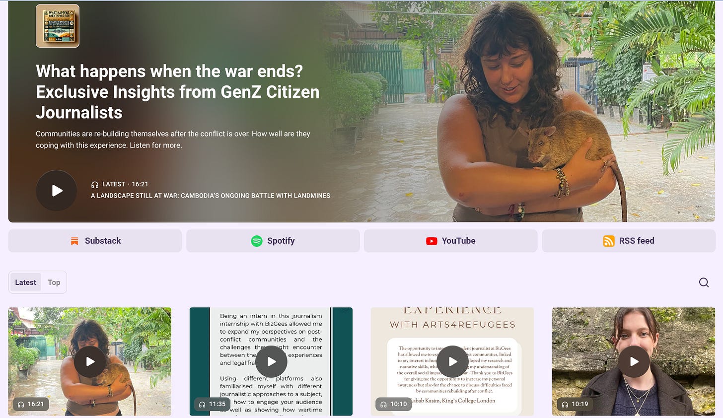 Coming onto what we have been working on now. Over the coming months we will be providing vocational training to 45+ GenZ from the UK and US. They will complete professional development level courses in Journalism. They will then use the learning to research and write about communities recovering from conflict.