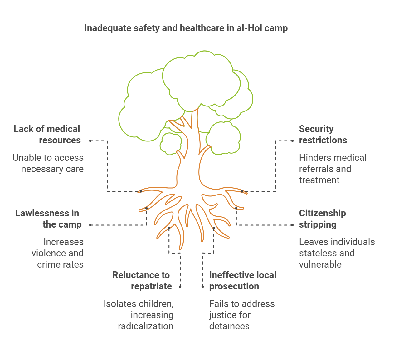 The limited services available in the annex mirrors their position globally. Some are viewed as subscribing to radical ideologies, with many having willingly left their home countries to join ISIS. Therefore, there is little drive internationally to help these refugees. The lack of medical care in the annex is just the tip of the iceberg, many have been abandoned by their respective countries who have refused repatriation and even stripped them of their citizenships.